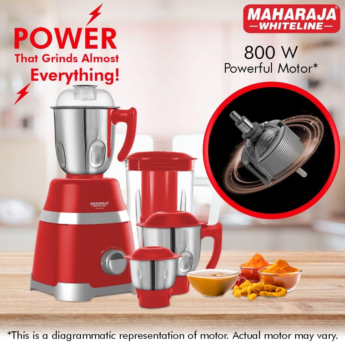 800W Motor: Powerful 800W motor grinds toughest of ingredient with ease and perfection