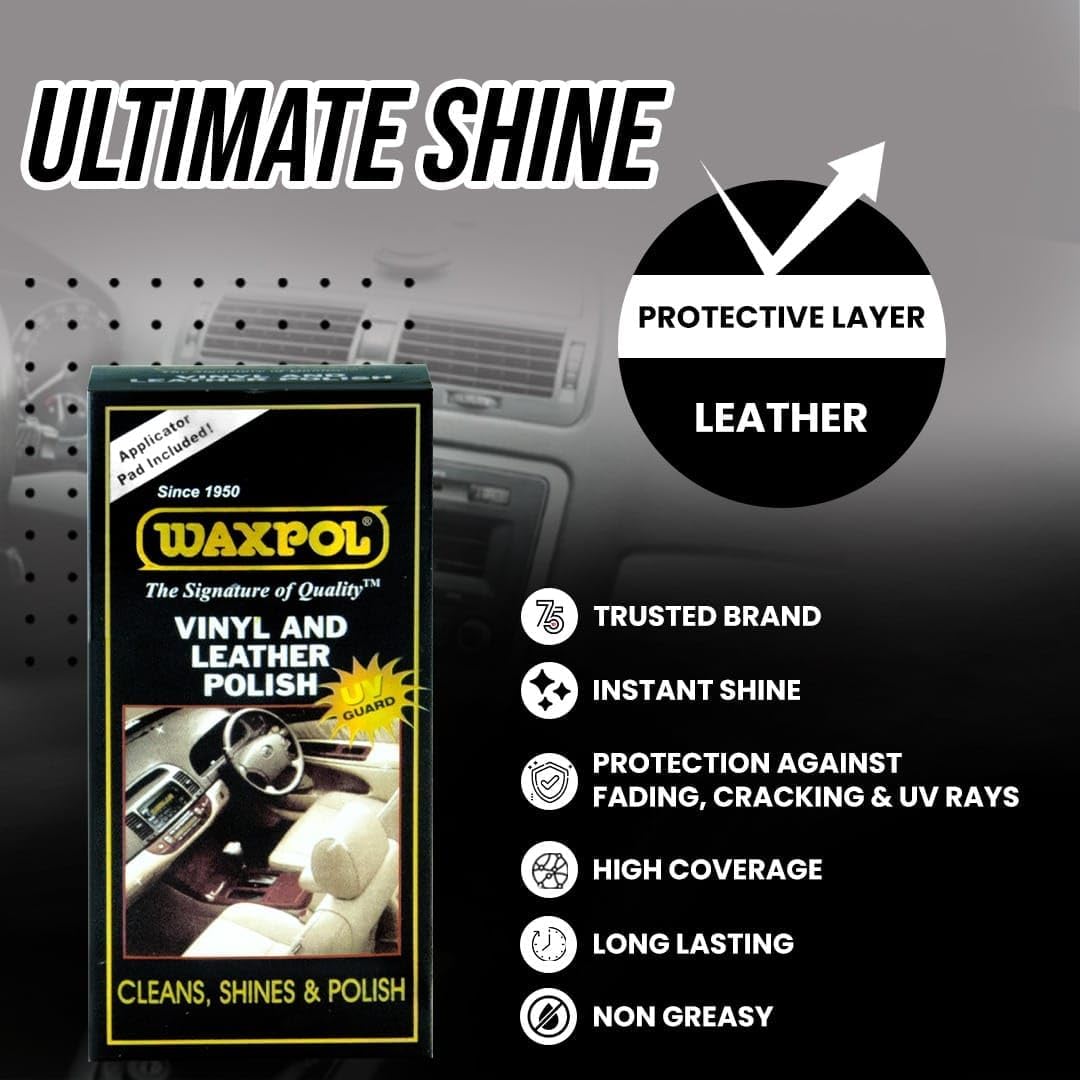 *RESTORE SHINE:* Achieve a high and durable shine, enhancing the deep, rich color of surfaces. *CLEANSE and NOURISH:* Cleans, nourishes, and restores surfaces without leaving a greasy residue. *UV PROTECTION:* Shields surfaces from UV rays, atmospheric oxidation, dust, and bugs to prevent dullness and discoloration. *HIGH COVERAGE:* Just a few drops provide extensive coverage without attracting dust. *VERSATILE USE:* Suitable for automotive, household, and office surfaces such as vinyl, leather, plastic, and more.