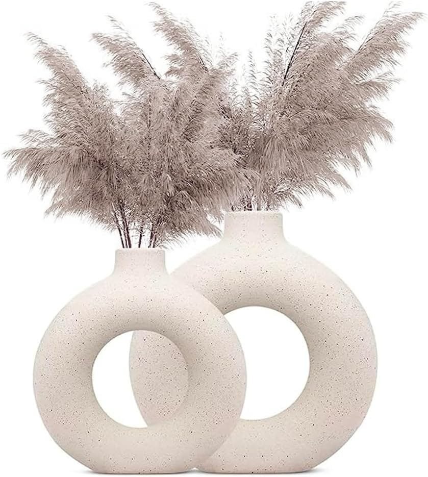 White Vase | Flower Vase | Pampas Grass Vase | Ceramic Vase | Round Shaped Vase | Home Decor Centrepiece | Decor Showpiece Donut Vase (Pack of 2)