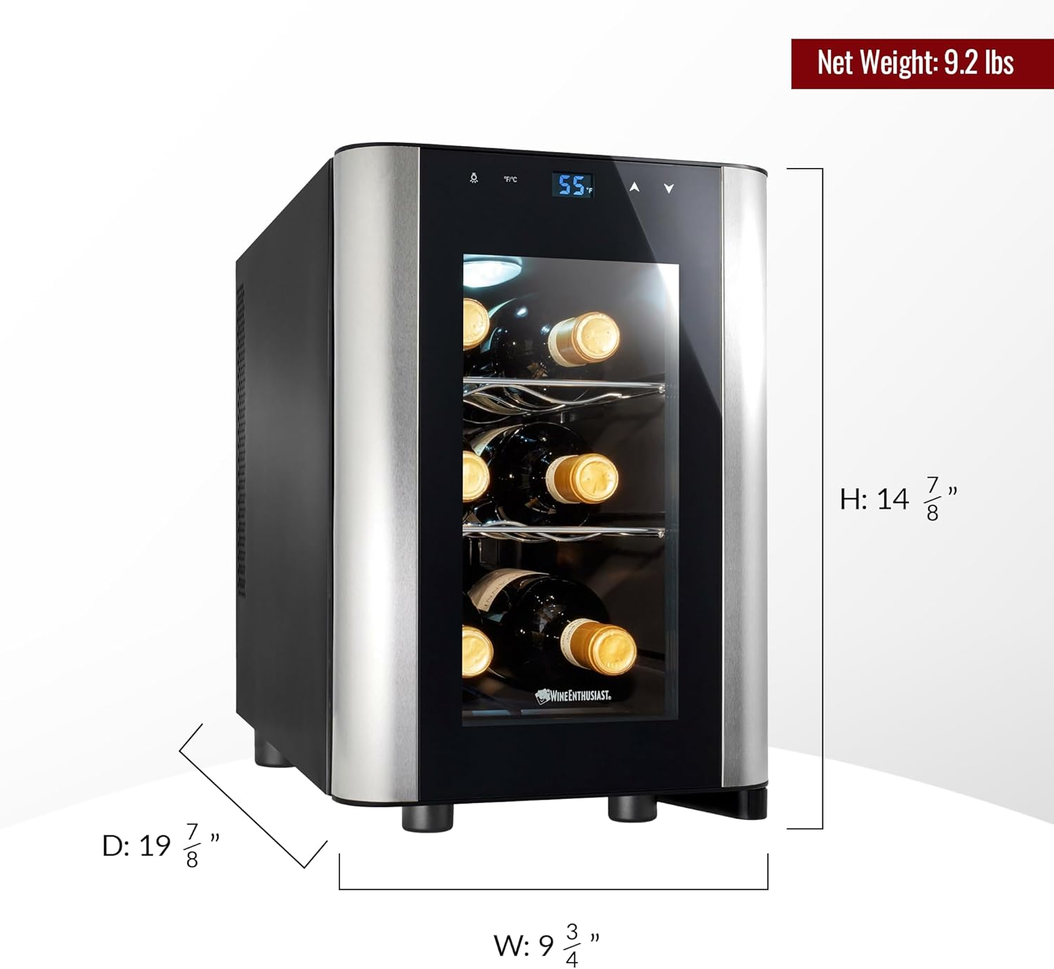 Wine Enthusiast 6-Bottle Countertop Wine Cooler – Compact Mini Fridge for Kitchen or Bedroom with 3 Shelves, Energy-Efficient Cooling, Adjustable Digital Temperature Control, Beverage Refrigerator
