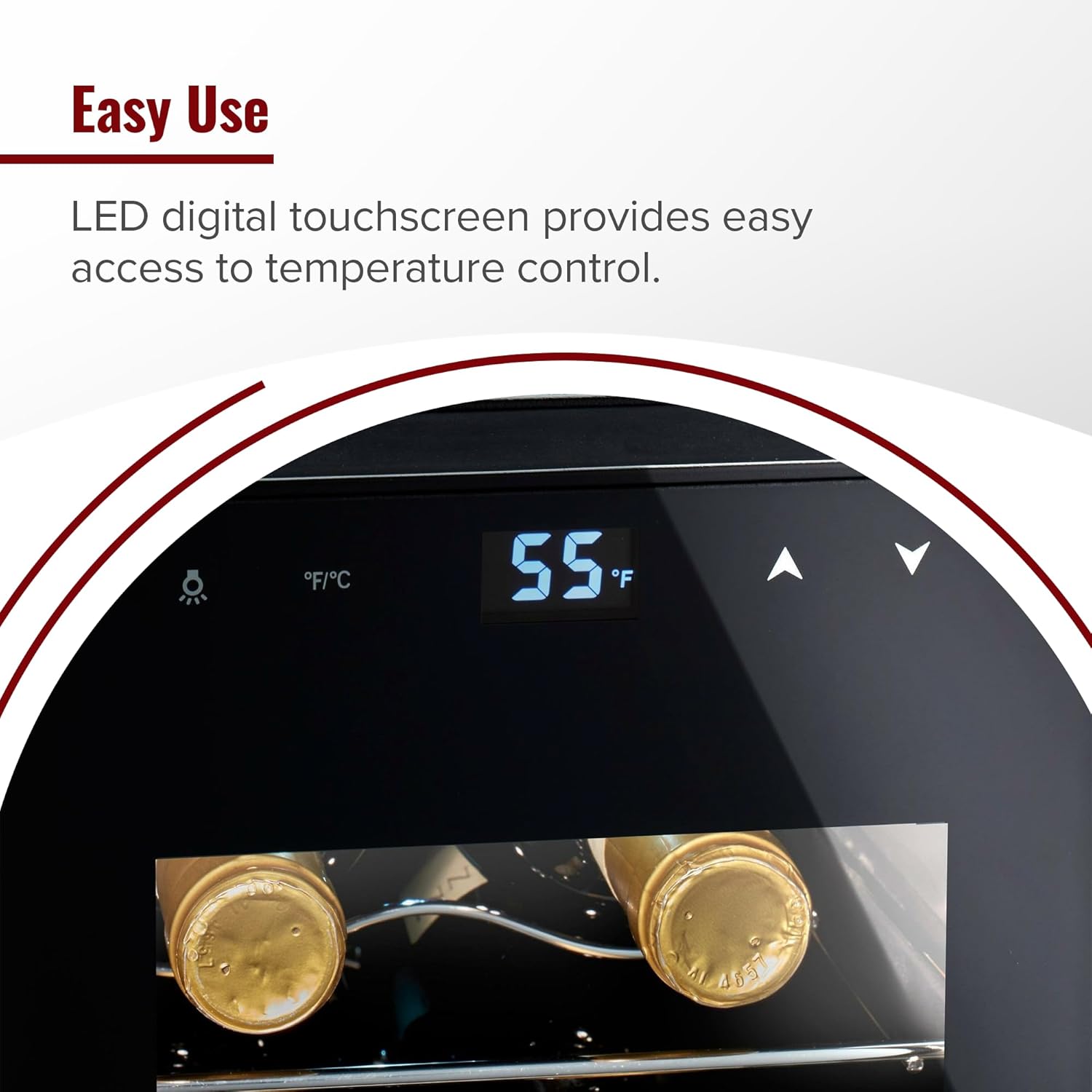 Precise Temperature Control: Adjust wine storage temperatures effortlessly with the user-friendly digital touchscreen and LED display. Perfect for reds, whites, and rosés, providing optimal cooling
