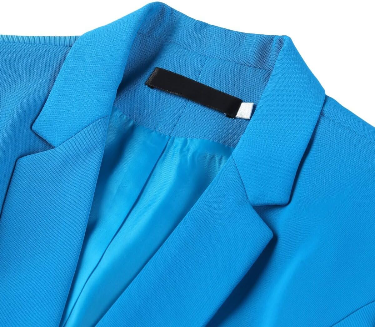 The blazer features with peaked lapel, double breasted, two buttons closure, two pockets, button cuff; The suit pants feature button and zipper closure, two side pockets, elastic waist